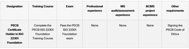 The certificate requirements for the ISO 22301 Foundation are: