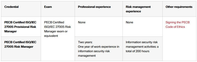 The PECB ISO/IEC 27005 Risk Manager certification dhttps://pecb.com/education-and-certification-for-individuals/risk-assessment-methods-trainingemonstrates that you comprehend the concepts and principles of information security risk management.