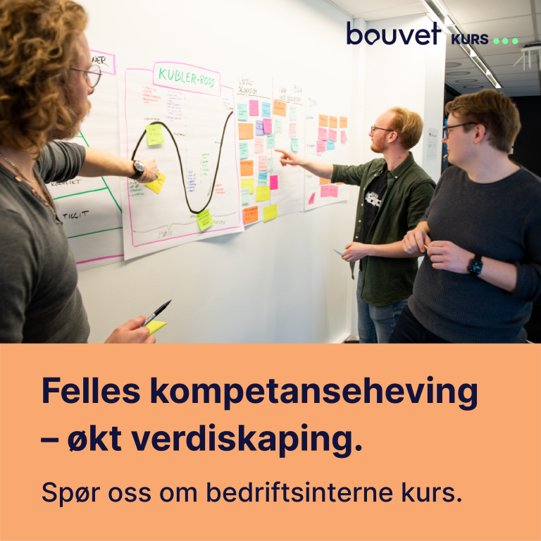 Ta kontakt med kurs@bouvet.no om du ønsker pakkepris. Pakkepris gis kun når kursene bestilles samtidig.